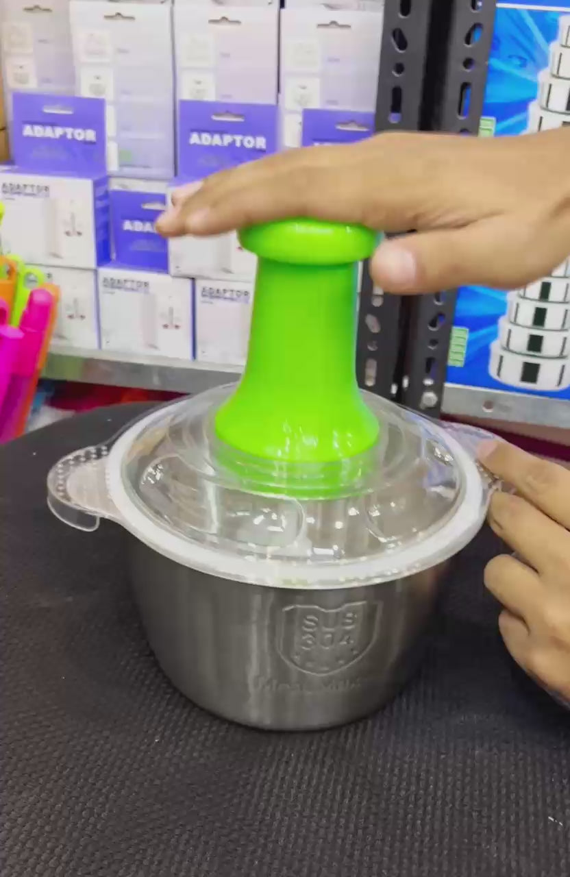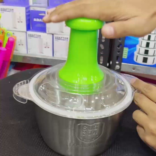 This manual 2L stainless steel chopper is a perfect kitchen essential for quick and effortless food preparation. It features a durable stainless steel bowl, a manual push design that requires no electricity, and a clear lid for easy visibility while chopping. The non-slip base ensures stability during use, making it safe and convenient for everyday cooking.